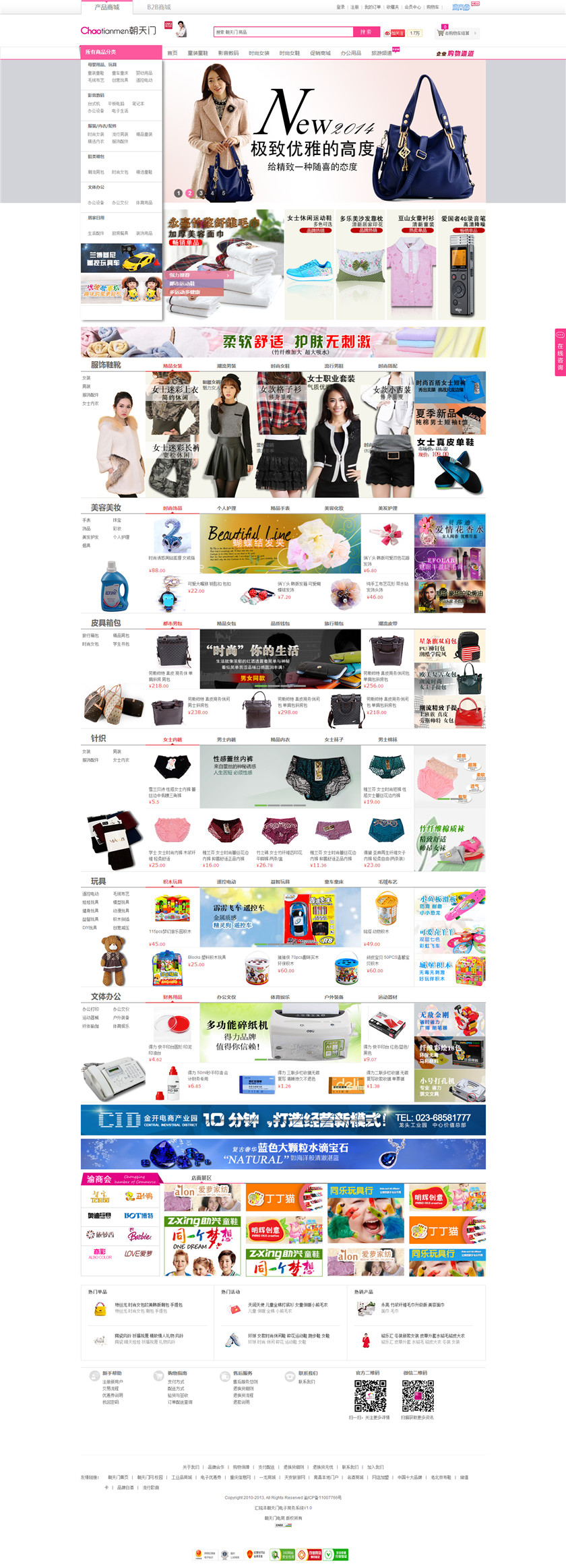 Project Description 朝天门网隶属于重庆汇铭洋市场经营管理有限公司。朝天门网是以优质、时尚为网站定位的大型的B2B和B2C电子商务平台;销售商品类别主要集中于童鞋、玩具、文具等。朝天门特卖商城是依托朝天门批发市场资源,以大幅优惠的价格销售上万款知名品牌的时尚商品。 Official website address 南岸 I want to share