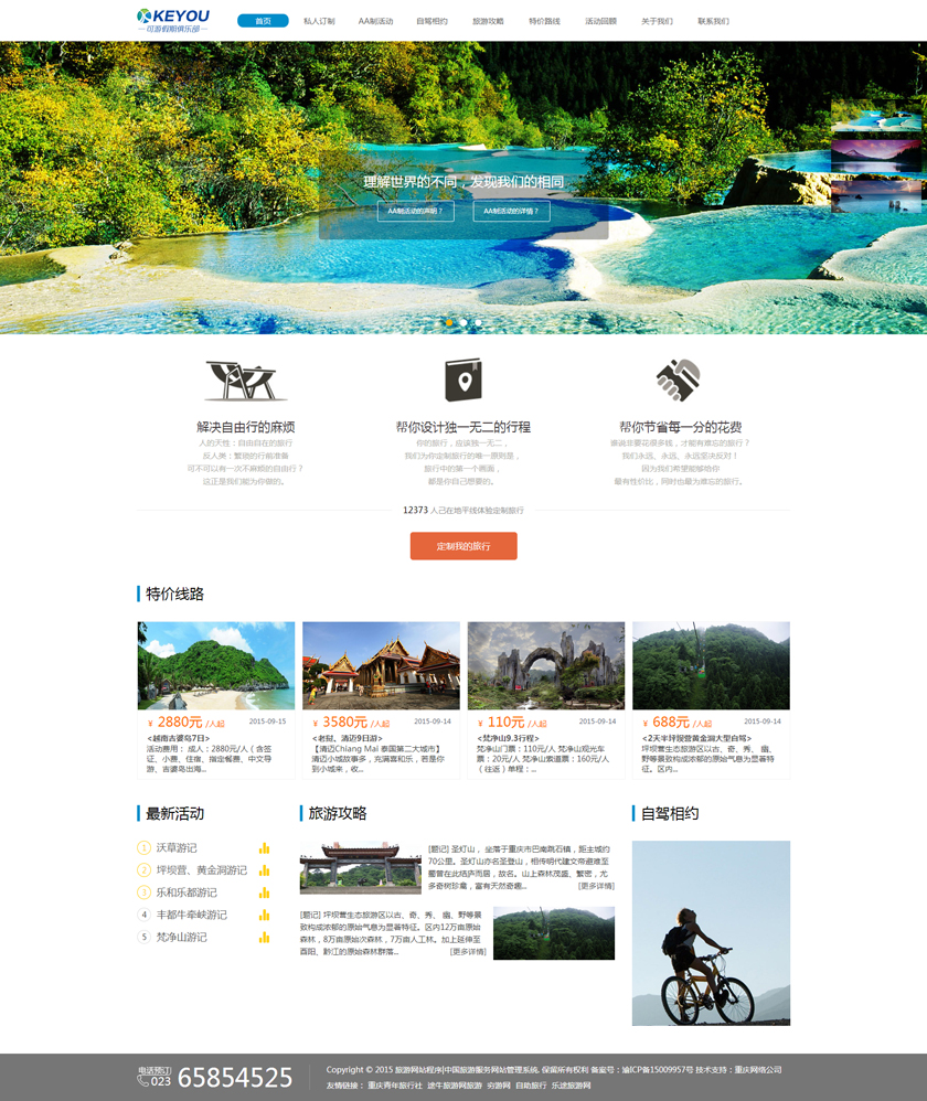 Project Description 6人游旅行网隶属于北京六人游国际旅行社有限公司。打造“为爱出行”:专为家庭,朋友,情侣间的旅行,提供私家小团精品游。打造高品质的旅行产品,解决传统跟团游和自由行存在的问题,将旅行服务做到臻善臻美。 Official website address 南岸http://www.keyoujq.com I want to share