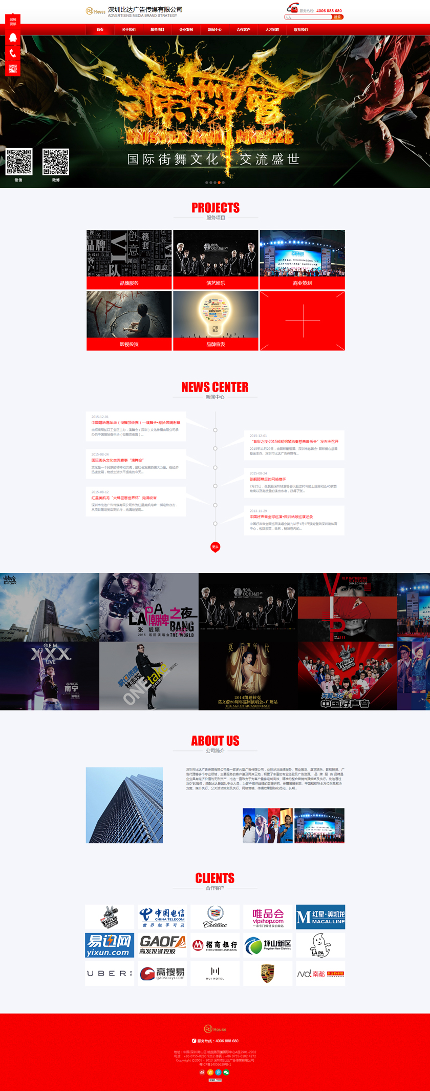 Project Description 深圳市比达广告传媒有限公司是一家多元型广告传媒公司,业务涉及品牌服务、商业策划、演艺娱乐、影视投资、广告代理等多个专业领域,主要服务的客户遍及两岸三地,积累了丰富的专业经验及广告资源。 Official website address 南岸http://www.pdhouse.com I want to share