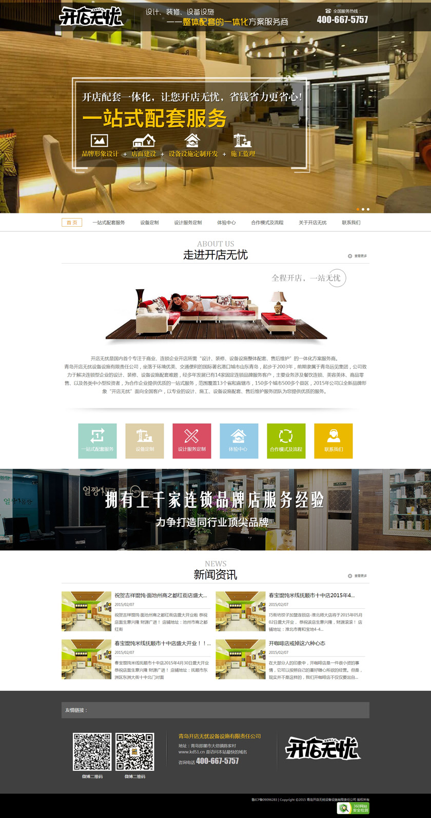 Project Description 开店无忧是国内首个专注于商业、连锁企业开店所需“设计、装修、设备设施整体配套、售后维护”的一体化方案服务商。